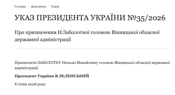 8 січня глава держави повідомив, що підписав укази про призначення нових керівників облдержадміністрацій у чотирьох областях. Мова про Полтавщину, Буковину, Вінниччину та Дніпропетровщину.